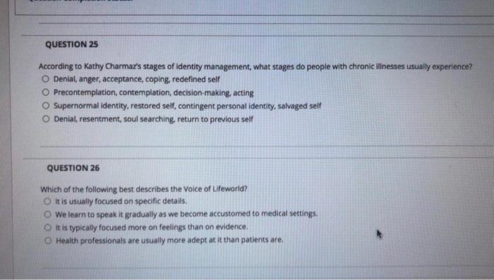 Solved Question 25 According To Kathy Charmaz S Stages Of Chegg Com